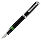 Pelikan Souverän M805 Füller - Dieser edle Kolbenfüllhalter der Souverän Serie begeistert durch klassisches Design und unbeschreiblich gutem Schreibkomfort. Ausgestattet mit einem sagenhaften Kolbenmechanismus lässt sich dieser Füllhalter rasch mit Tinte nach Wahl befüllen und ist sofort wieder startklar. Eine Kombination aus edlem schwarz und versilberten Zierelemente kreiert wahre Klasse und Seriösität.
