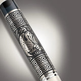 Dieser Füllhalter ist eine Hommage an die Kunst des Damaszierens, eine tausend Jahre alte Handwerkstechnik. Mit der Special Edition Toledo M910 White beweist Pelikan Liebe zum Detail. Jeder Arbeitsschritt für das detailreiche, handveredelte Pelikan-Motiv auf der 925er Sterling-Silber Binde ist einzigartig und verleiht dem Schreibgerät Lebendigkeit.