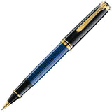 Pelikan Souverän R800 Rollerball - Ein sagenhaftes Schreibgefühl bietet dieser edle Rollerball von Pelikan. Die edle und klassische Kombination von schwarz und blau ist ein wahrer Blickfang und wird nochmals durch die goldenen Zierelementen hervorgehoben. Etwas grösser und massiver als der R600 glänzt dieser Rollerball durch eine angenehmen Schwere und ideales Handling.