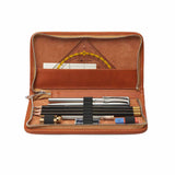 Das Sonnenleder Stifteetui "Nietzsche" bietet genügend Platz für 8 Schreibgeräte oder Zubehör bis zu 17 cm Länge. Mit 2 Schlaufen für Radierer oder Spitzer und einem Lederfach für Lineal oder anderes Zubehör. Verschließbar durch einen Reißverschluss. Jedes Stück ist ein Unikat mit möglichen Farb- und Strukturabweichungen.