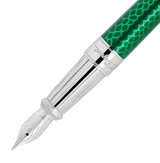 - Material: Füllfederhalter mit breiter Guilloche unter grünem Lack mit Schlangenschuppen